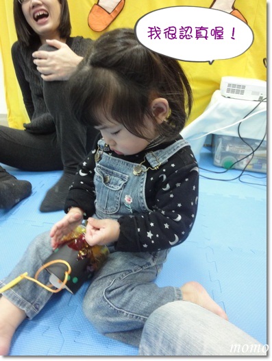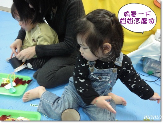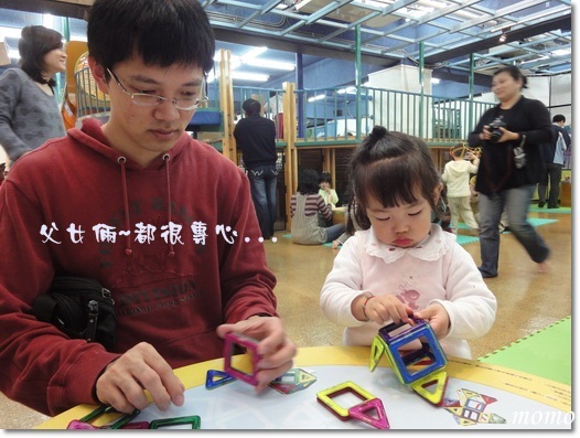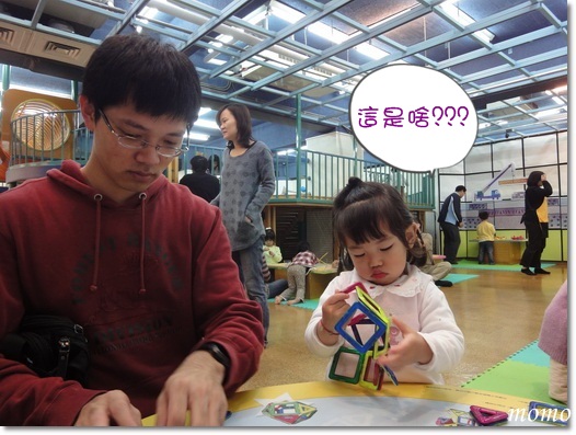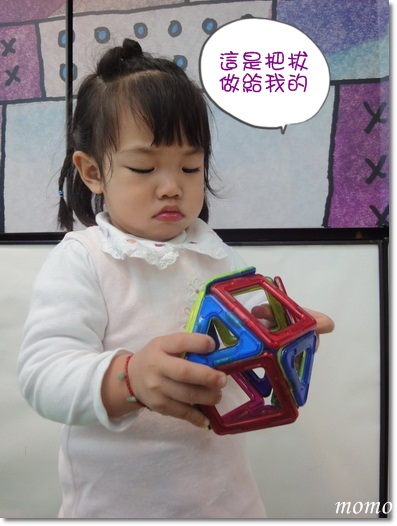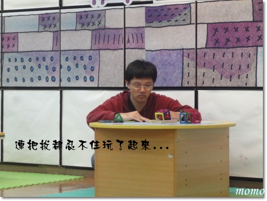 把拔趁mumu再跳律動時,偷偷的跑回去玩磁鐵積木^^