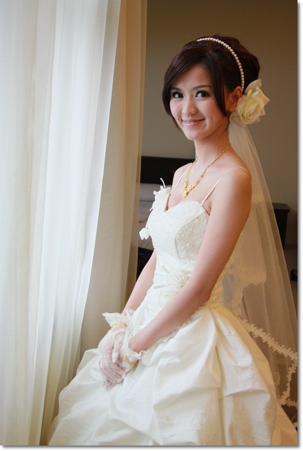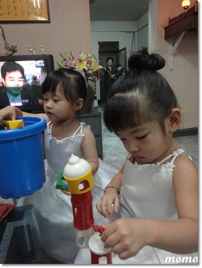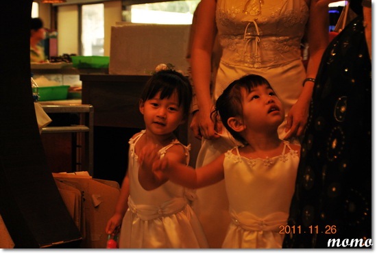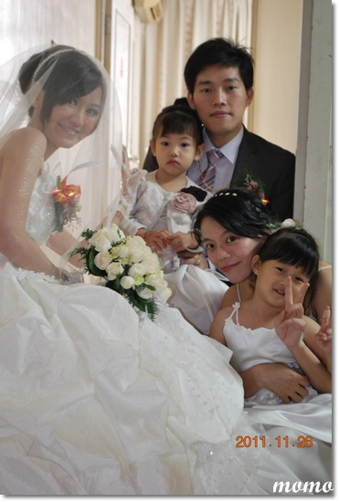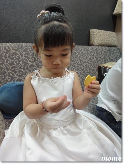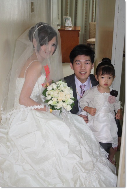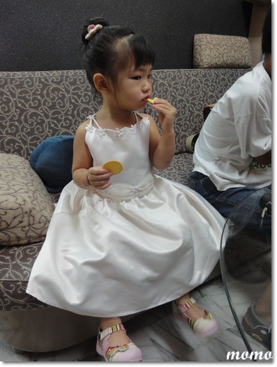 mumu第一次當花童,阿嬤很慎重的幫她梳了個包包頭^^