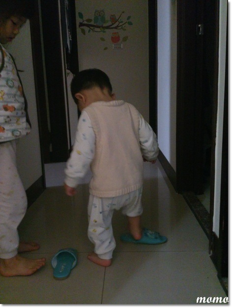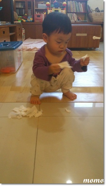 越來越調皮~~會學大人、姐姐拿衛生紙擦地板